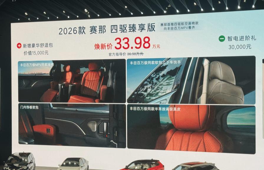 现在的新车主流趋势就是降价,甭管产品是否主流,该降价的时候绝对不含糊。即使新车前期定价比较高,还不优惠得,但在终端的价格往往也已经“一泻千里”。不管是豪车还是合资车,亦或者是自主品牌,必须要拿出十足的诚意才能打动用户。近期又有一款新车型开始大幅度降价,那就是26款丰田赛那。